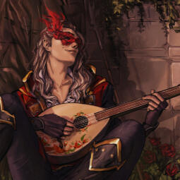 A patron of the Rumour Mill: As is to be expected when one is as adventurous as he, The Rose has no shortage of rumour, speculation and half-truths swirling around his moniker and his activities. From being presumed as an eloping prince, to decried as a scoundrel with no respect for the nobility of the realms of men, to being cheered for as an eccentric champion of those in need; there are a plethora of notions attributed to the balladeer. He revels in such, all too content to spin the tales to his advantage, if it suits his fancy. Perhaps you've heard of such things, or perhaps you are the cause for such and chance has had you cross paths with the man himself!