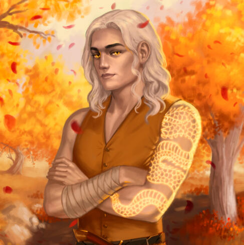 TATTOOS: A cloud serpent winding up the left arm, resting its head atop the heart. It shares in the colour of his eyes when he is wielding large quantities of Chi.
